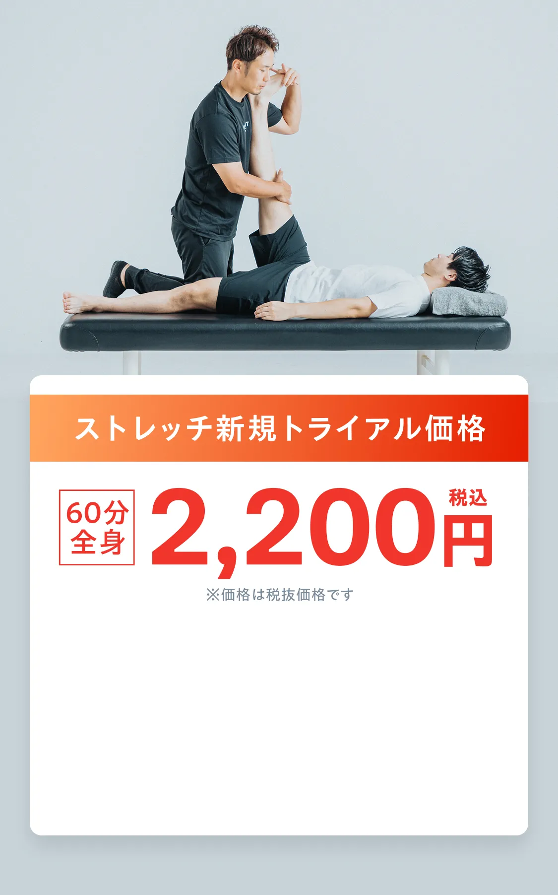 Q体が硬くても大丈夫でしょうか?A問題ございません。むしろ体が硬い方ほど筋肉が固まっており血流が悪くなっている可能性がありますので、当店のサービスにぴったりです。また、通っていただくうちに筋肉が柔らかくなり柔軟性が高まります。